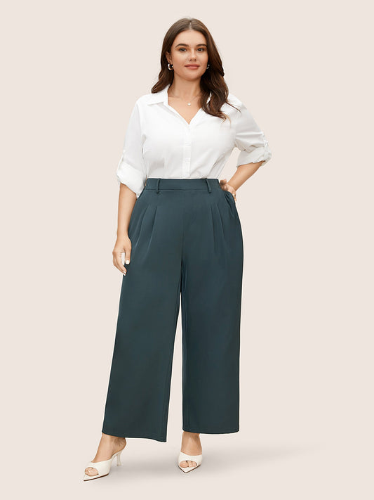 Mid Rise Elastic Waist Pleated Wide Leg Pants