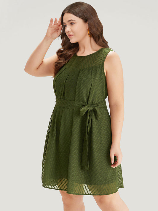 Plisse Mesh Patchwork Belted Pleated Dress