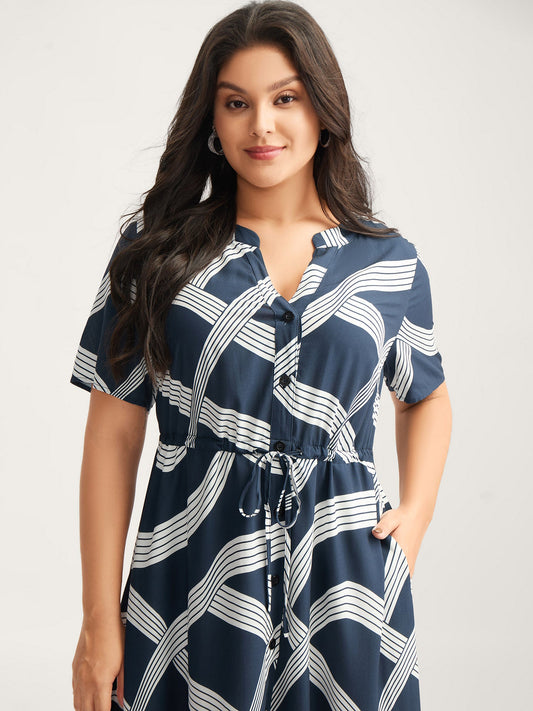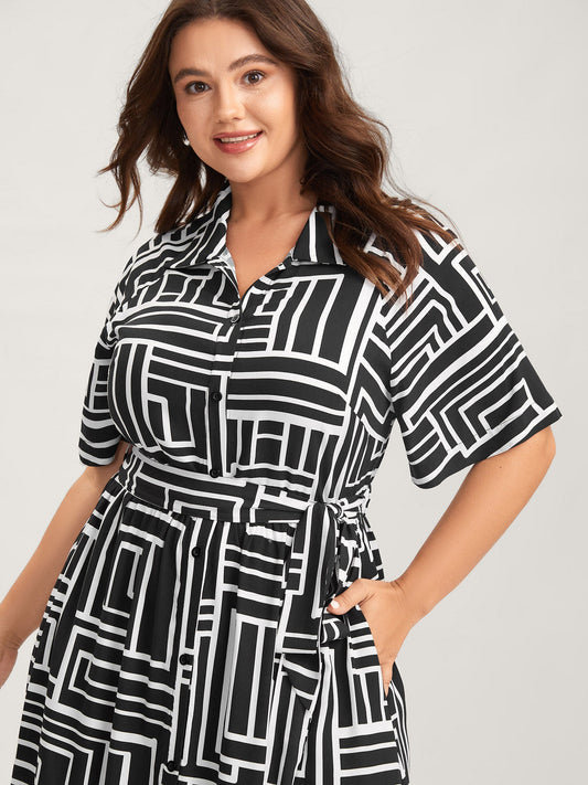 Polka Dots Stretchy Waist Contrast Midi Dress