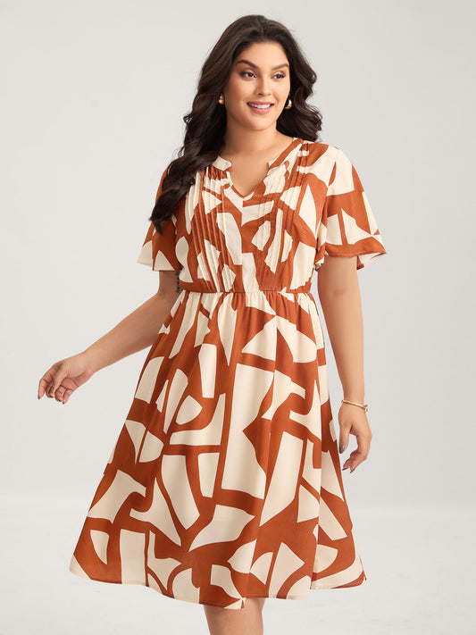 Layered Lace Sleeve Cinched-Waist Midi Dress