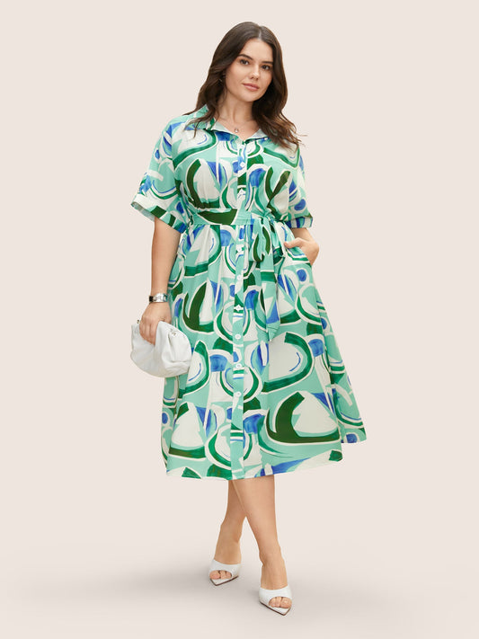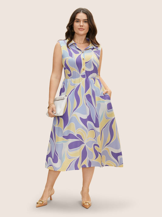 Geometric Elastic Waist Button Up Tank Dress