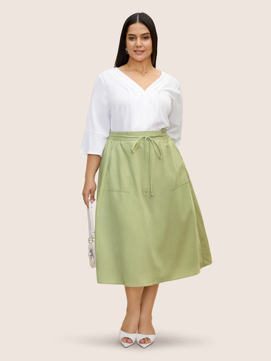 Solid Elastic Waist Split Hem Drawstring Skirt