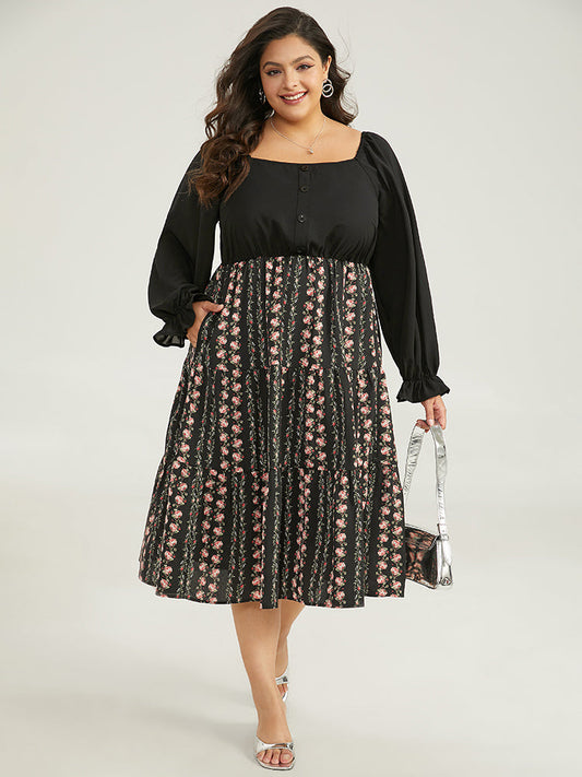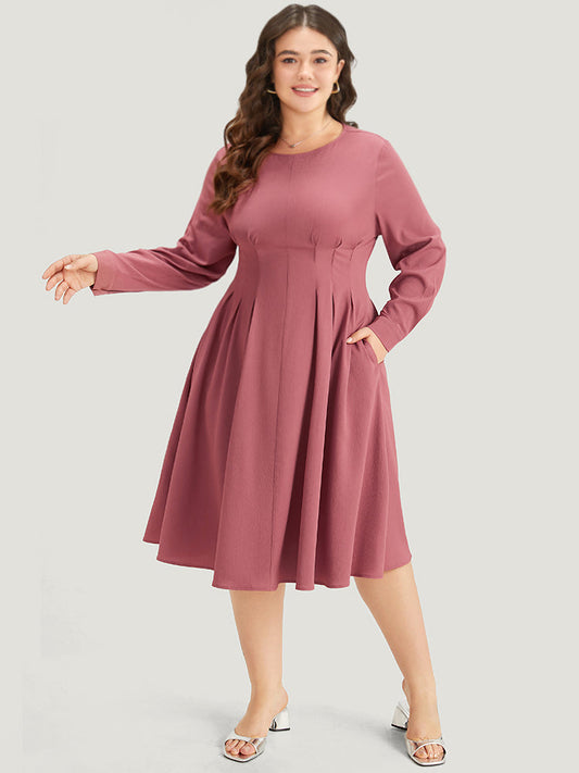 Crew Neck Plicated Detail Ruffle Hem Dress