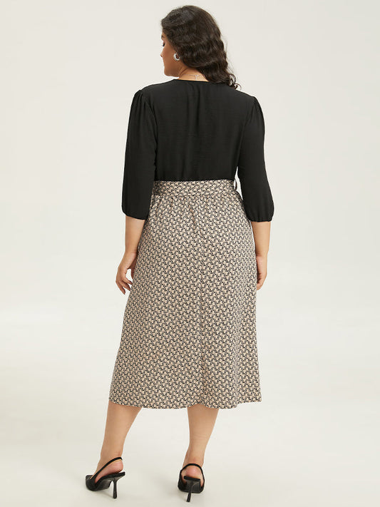 Anti-Wrinkle Plain Surplice Neck Bell Sleeve Blouse