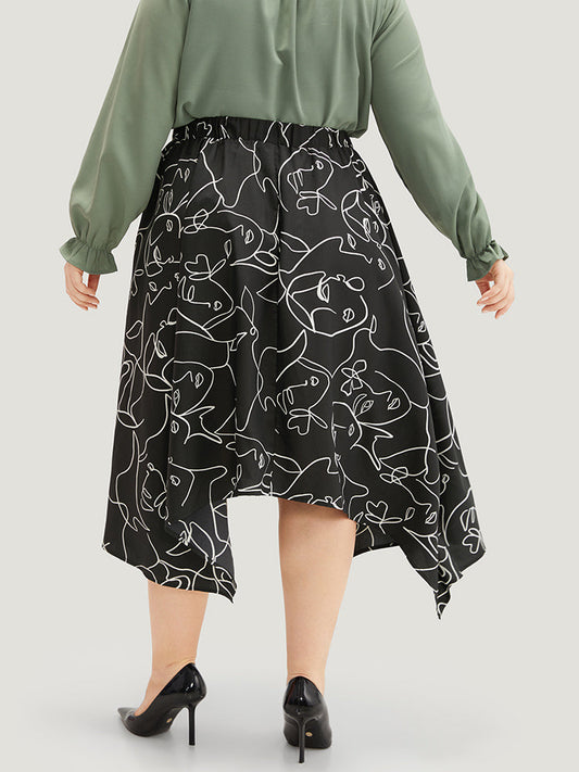Graffiti Print Elastic Waist Hanky Hem Skirt