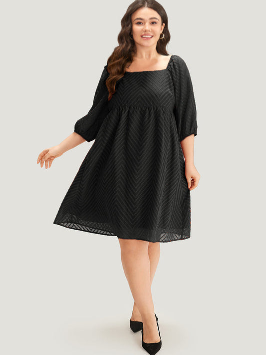 Plisse Solid Square Neck Lantern Sleeve Dress