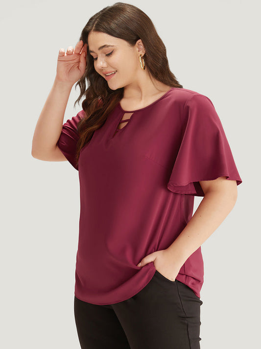 Plain Ruffle Sleeve Cut Out Blouse