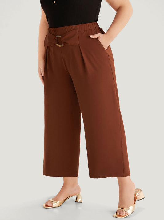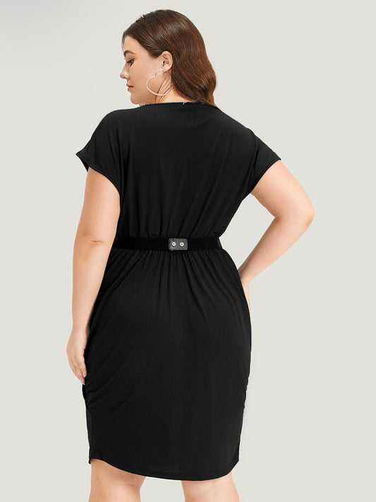 Plain Wrap Gathered Curved Hem Metal Detail Belted Dress