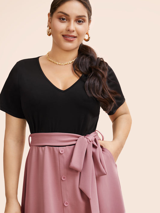 Supersoft Essentials Two Tone Pocket Patchwork Belted Dress