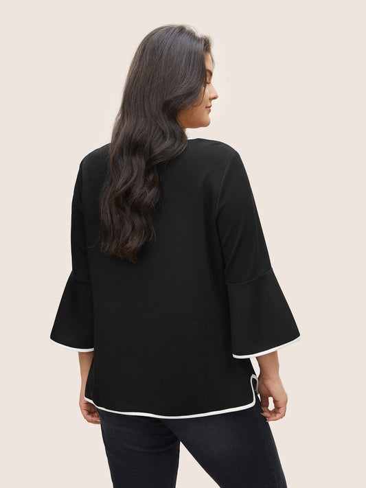 Contrast Trim Round Neck Flutter Sleeve T-shirt
