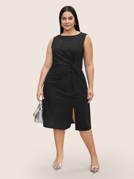 V Neck Plain Split Hem Sleeveless Midi Dress