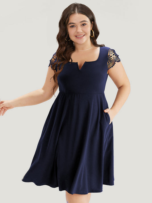 Plain Ruffle Trim Pocket Cap Sleeve Midi Dress