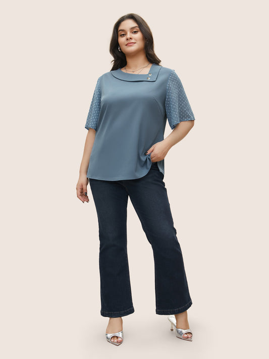Patchwork Chiffon Asymmetrical Neck Button Detail Blouse