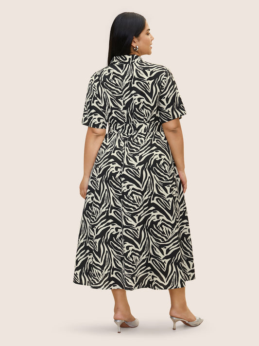 Shirt Collar Striped Ruffle Cap Sleeve Dress