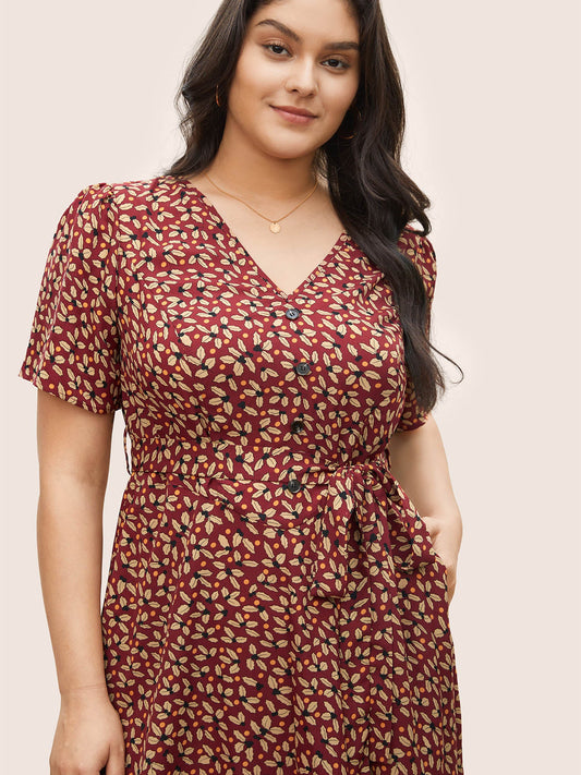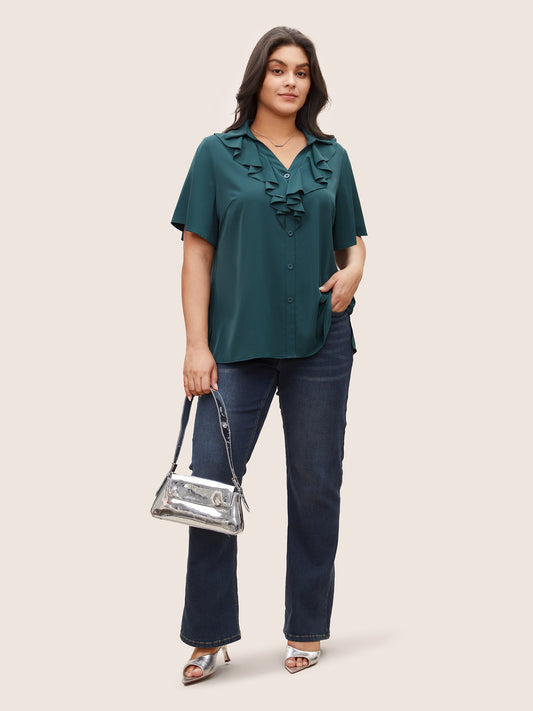 Suit Collar Double Breasted Ruffle Cap Sleeve Dress