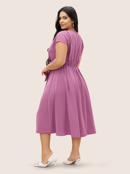 Plain Dolman Sleeve Tie Knot Button Up Dress