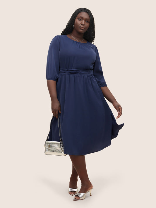 Polka Dot Keyhole Elastic Waist Belted Dress