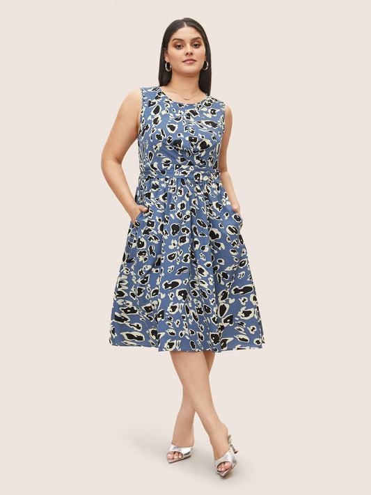 Animal Print Ruched Crossover Sleeveless Dress