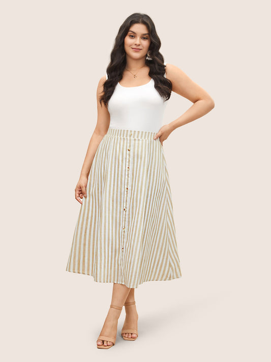 Stripes Elastic Waist Button Detail Pocket Skirt