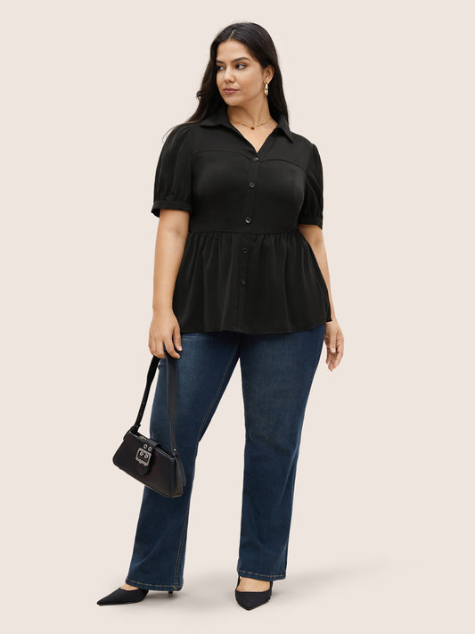 Shirt Collar Solid Button Detail Gathered Blouse