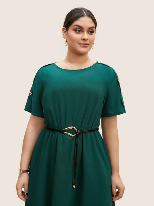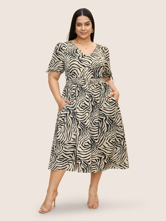 Zebra Print Elastic Waist Drawstring Sleeve Dress