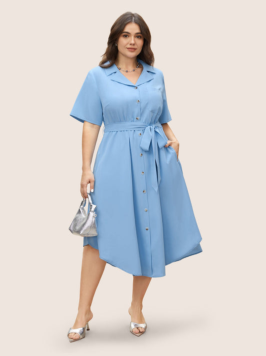 Suit Collar Plain Button Up Dress