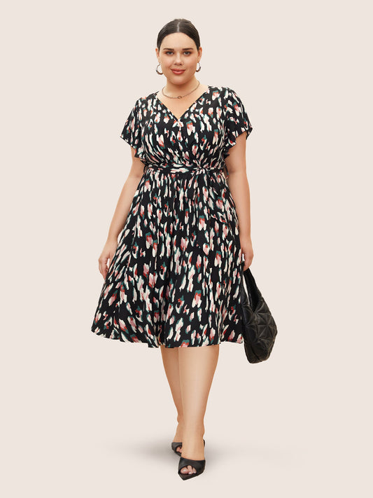 Allover Print Surplice Neck Flutter Sleeve Dress