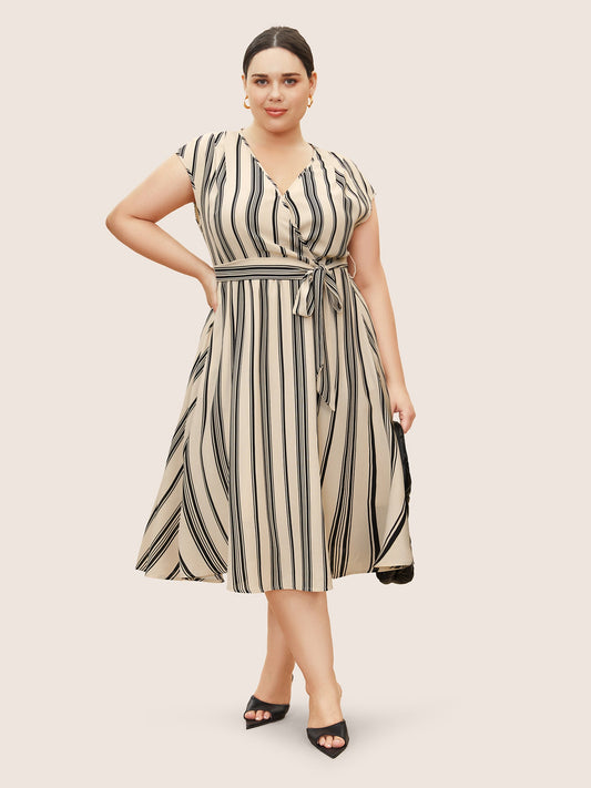 Surplice Neck Striped Cap Sleeve Dress
