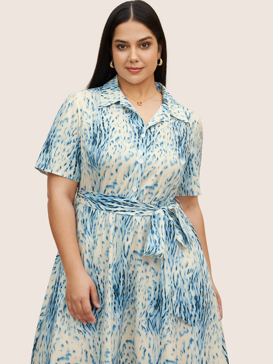 Animal Print Shirt Collar Button Up Dress