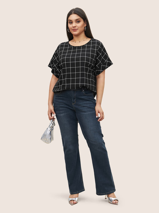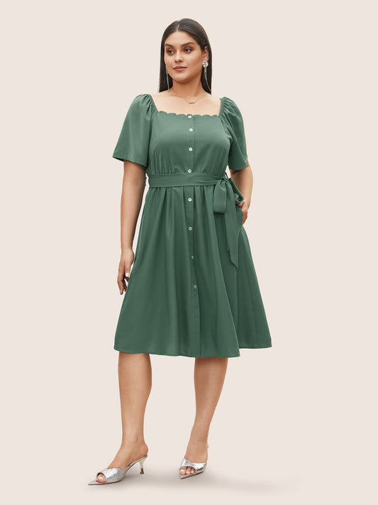Anti-Wrinkle Square Neck Scalloped Trim Ruffle Sleeve Dress