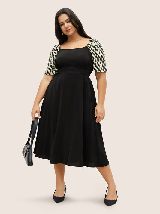 Geometric Square Neck Raglan Sleeve Elastic Waist Dress