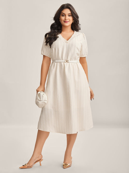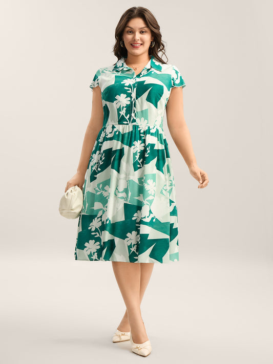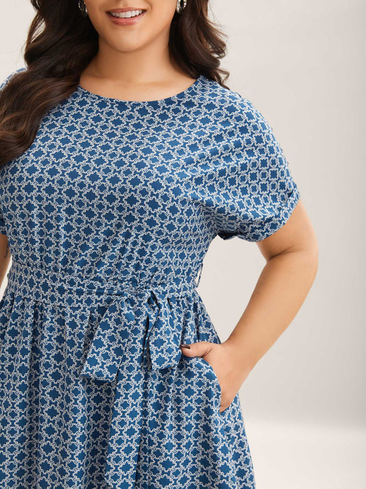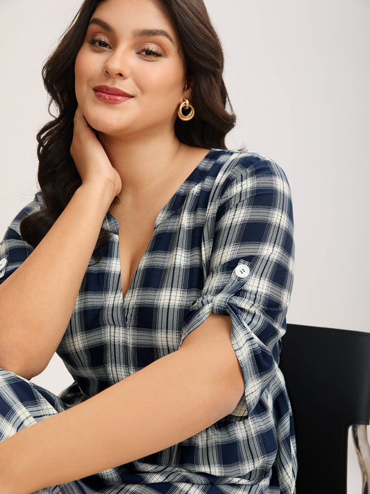 Plaid Pattern Tab Sleeve Pockets Midi Dress