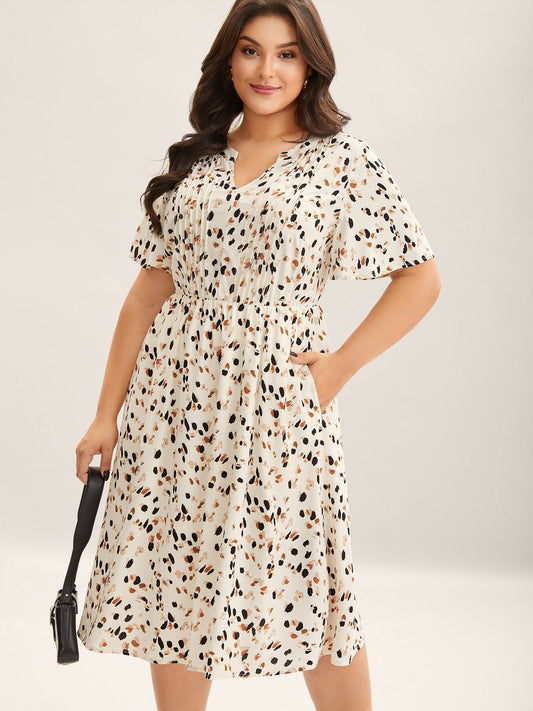 Rayon Bubble Print Stretchy Waist Pockets Midi Dress