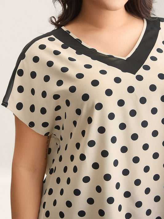 Polka Dots Print Dolman Sleeve Babydoll Top