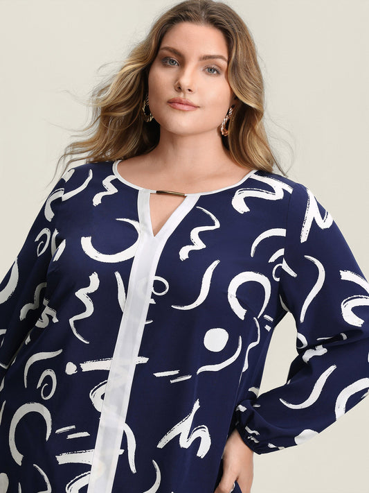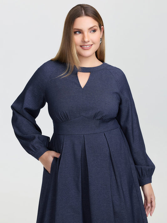 Denim-Like Pleated Cut-Out Neck Maxi Dress