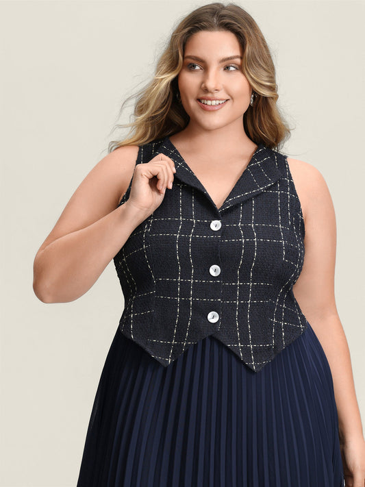 Plaid Pleated Skirt Contrast Vest Midi Dress