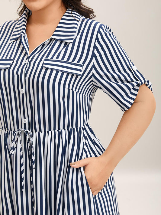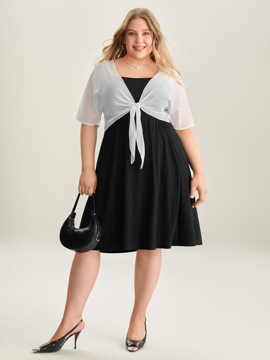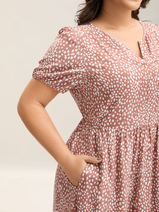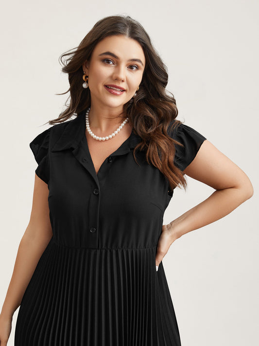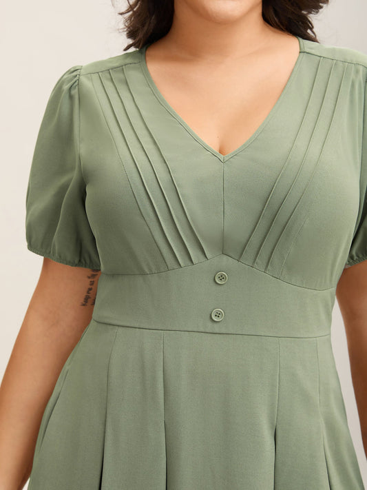 Pleated Neckline Cinched-Waist Solid Midi Dress