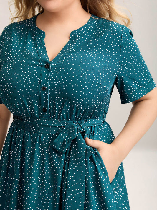 Stretchy Waist Tied Pockets Printed Midi Dress