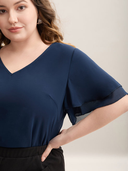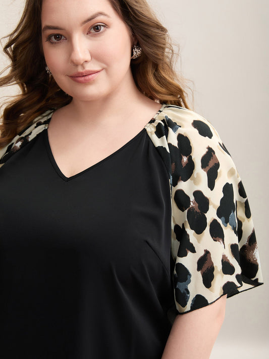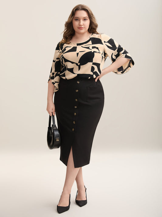 Geometric Pattern Tab Sleeve Flowy Blouse
