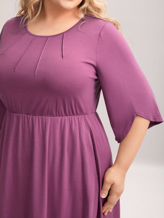 Woven Plain Floral-Neckline Sleeveless Midi Dress