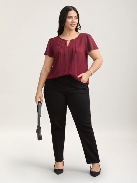 Toothpick Pleat Layered Flutter Sleeve Blouse