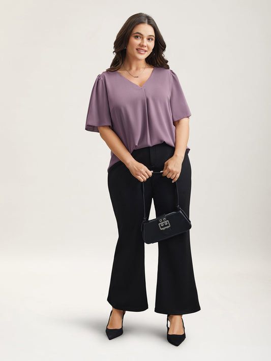 Pleated-Front Flutter Sleeve Shirt