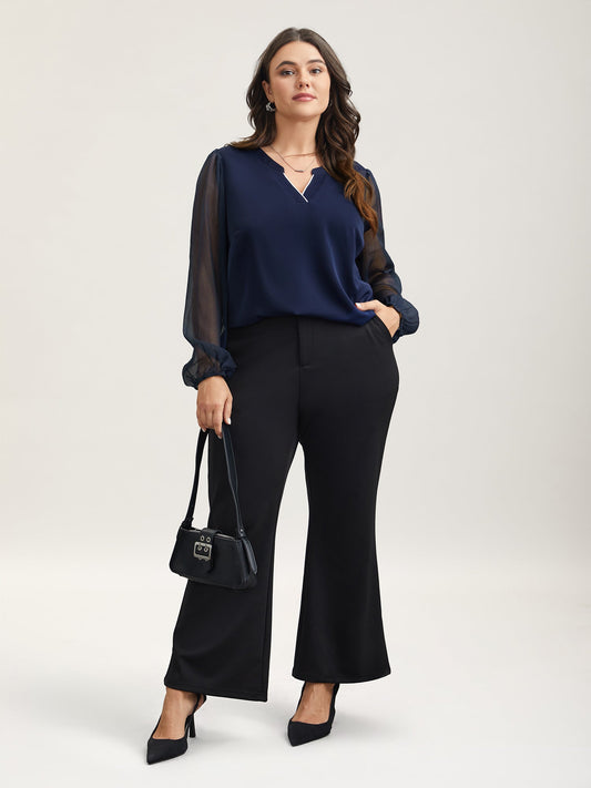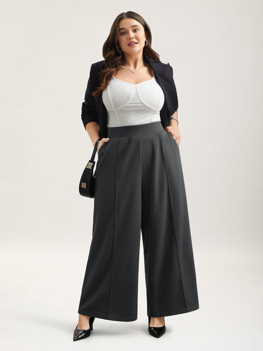 Ruched Tummy-Control Seamed Wide Leg Pants