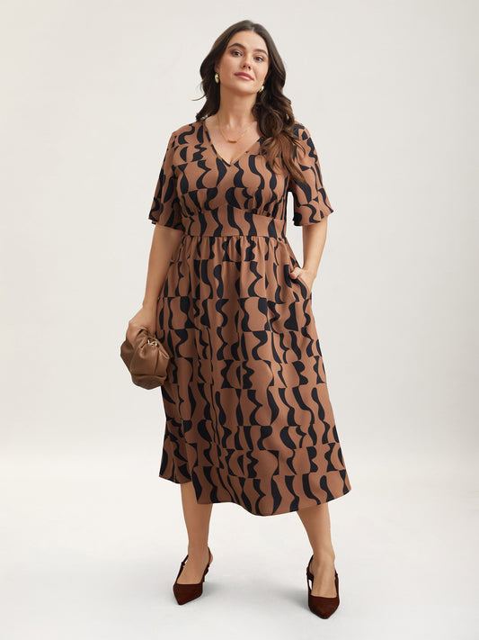 Wavy Print Corset Style Midi Dress