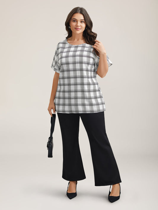 Plaid Rolled Hem Dolman Sleeve Shirt