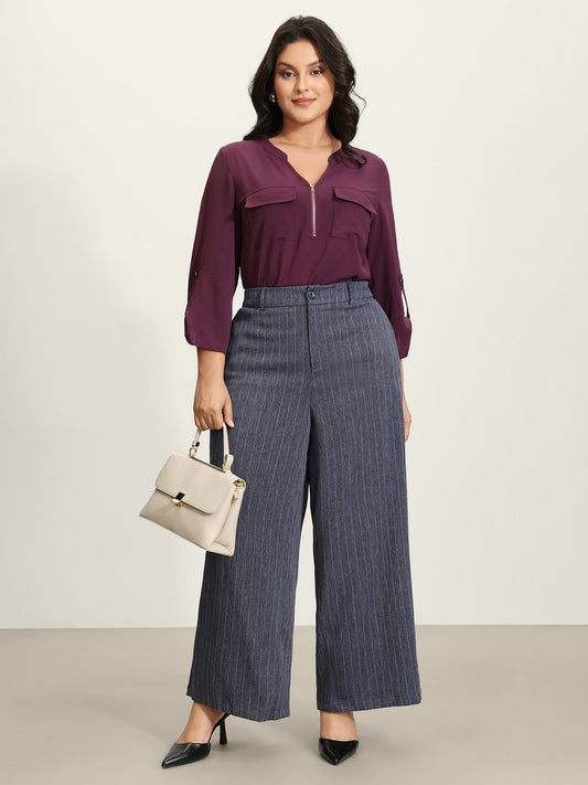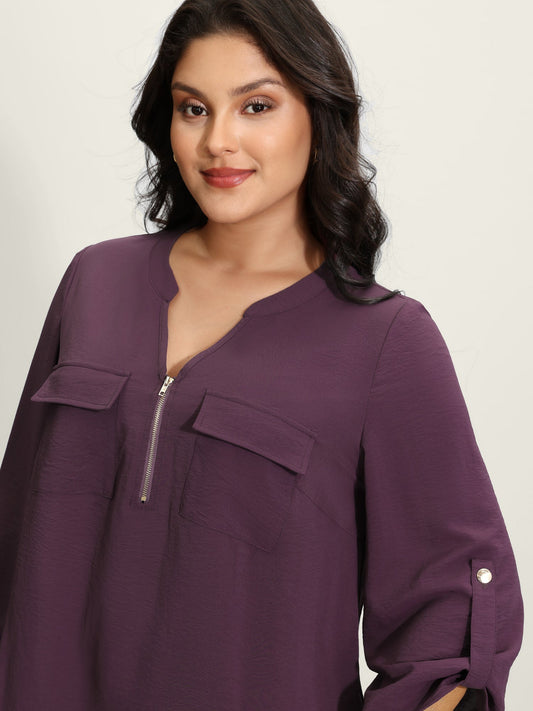 Half Zipper Tab Sleeve Blouse