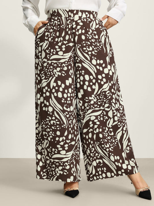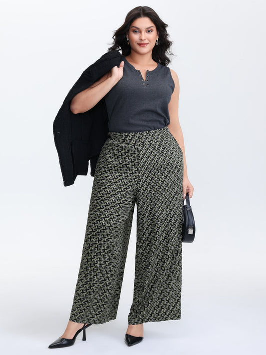 Geometric Print Stretchy Waist Wide-Leg Pants