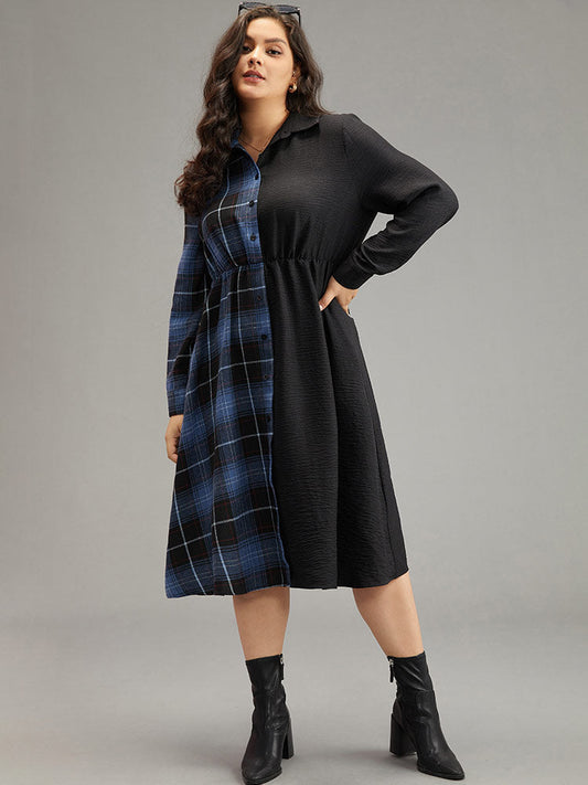 Plaid Patchwork Button Through Pocket Dress