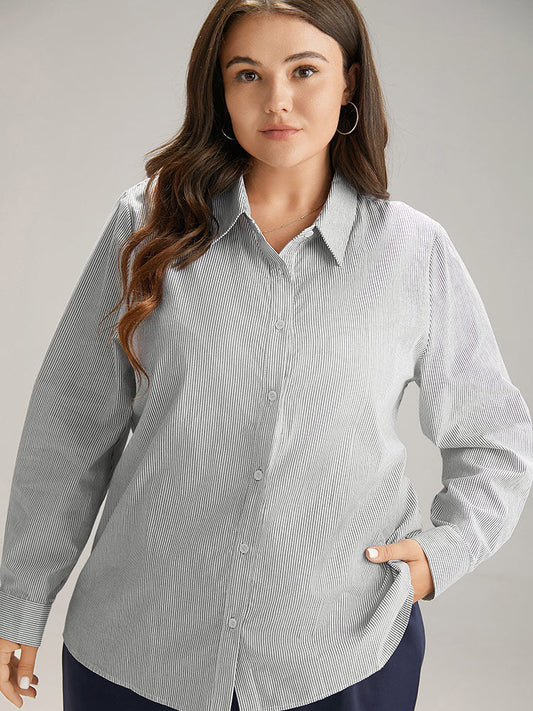Cotton Striped Shirt Collar Blouse