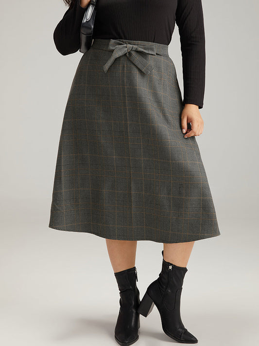 Plain Pocket Elastic Waist A-line Ties Skirt
